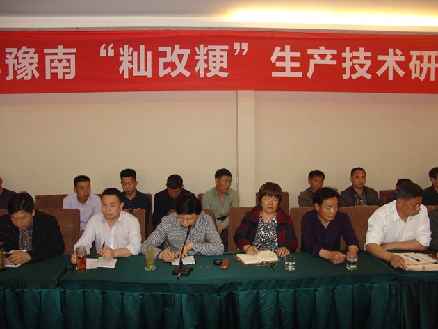 4月12日下午,2016年豫南“秈改粳”生產(chǎn)技術(shù)研討會(huì )在信陽(yáng)賓館召開(kāi),來(lái)自我市各縣區及駐馬店市確山縣、南陽(yáng)市桐柏縣“秈改粳”項目協(xié)作單位的負責人和技術(shù)人員、示范基地負責人及重點(diǎn)示范戶(hù)代表50余人參加了會(huì )議。豫南“秈改粳”項目負責人宋世枝研究員主持會(huì )議。