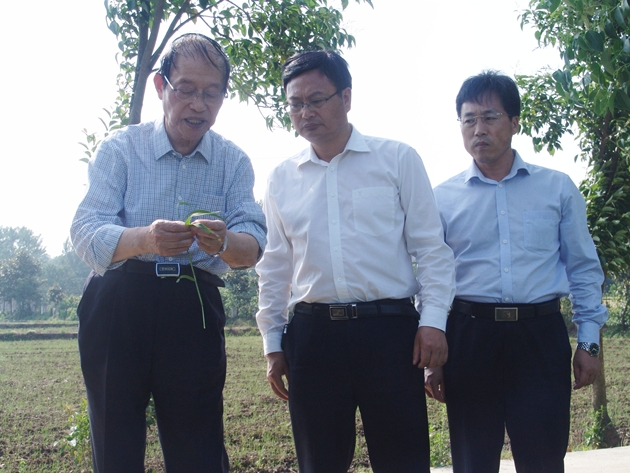 5月11日,江蘇省原副省長(cháng)、我國著(zhù)名農學(xué)家、作物栽培學(xué)家、作物精確定量栽培理論及技術(shù)體系的創(chuàng )始人、揚州大學(xué)凌啟鴻教授,河南農業(yè)大學(xué)農學(xué)院副院長(cháng)趙全志教授一行來(lái)我院調研指導再生稻試驗示范工作。