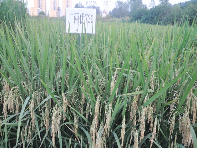 廣兩優(yōu)730(審定編號:國審稻20170055)屬兩系雜交秈稻,株高123.9厘米,全生育期141.5天。2015年參加南方稻區長(cháng)江中下游中秈遲熟組區域試驗,平均畝產(chǎn)稻谷685.0公斤,較對照增產(chǎn)7.8%;2016年續試,平均畝產(chǎn)稻谷646.5公斤,較對照增產(chǎn)6.3%;兩年區域試驗平均畝產(chǎn)稻谷665.7公斤,較對照增產(chǎn)7.1%。2016年生產(chǎn)試驗,平均畝產(chǎn)稻谷655.9公斤,較對照增產(chǎn)6.7%。米質(zhì)達到國家《優(yōu)質(zhì)稻谷》標準3級。適宜在長(cháng)江中下游地區作一季中稻種植。