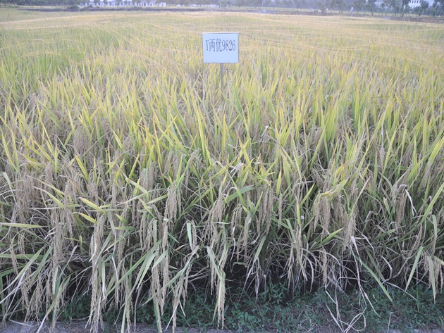 Y兩優(yōu)9826(審定編號:國審稻20170026)屬兩系雜交秈稻,株高125.1厘米,全生育期138.6天。2014年參加長(cháng)江中下游中秈遲熟組區域試驗,平均畝產(chǎn)稻谷622.8公斤,較對照增產(chǎn)6.4%;2015年續試,平均畝產(chǎn)稻谷691.6公斤,較對照增產(chǎn)8.4%;兩年區域試驗平均畝產(chǎn)稻谷657.2公斤,較對照增產(chǎn)7.4%。2016年生產(chǎn)試驗,平均畝產(chǎn)稻谷642.9公斤,較豐兩優(yōu)四號增產(chǎn)6.1%。米質(zhì)達到國家《優(yōu)質(zhì)稻谷》標準3級。適宜在長(cháng)江中下游地區作一季中稻種植。