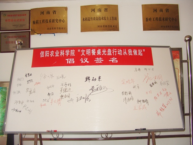 四是組織文明餐桌簽名活動(dòng)。9月6日下午,全院組織開(kāi)展了“文明餐桌光盤(pán)行動(dòng)從我做起”倡議簽名活動(dòng),全院廣大干部職工踴躍參與,院黨委書(shū)記韓勛來(lái)率先在宣傳板上簽上名,表達了對遵守文明就餐禮儀、厲行勤儉節約、合理消費等文明餐桌行為的承諾。