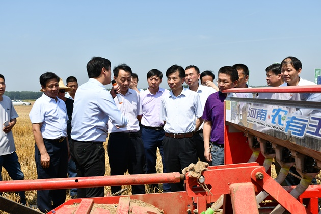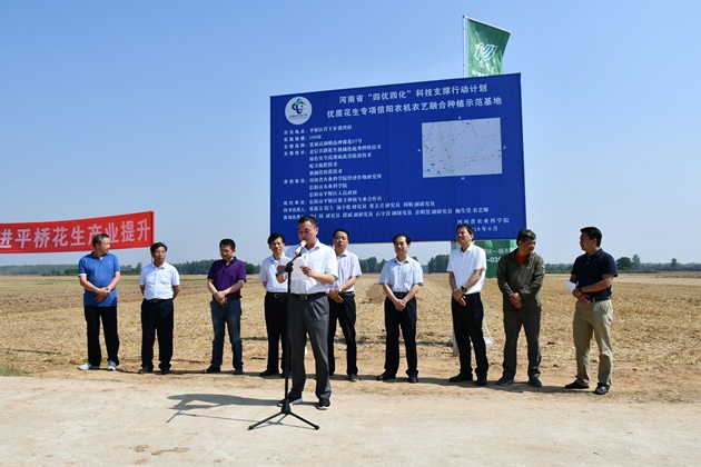 6月3日上午,由省農科院主辦、我院與平橋區政府承辦的河南省“四優(yōu)四化”科技支撐行動(dòng)計劃優(yōu)質(zhì)花生專(zhuān)項“花生農機農藝融合生產(chǎn)技術(shù)集成與示范”現場(chǎng)觀(guān)摩會(huì )在平橋區肖王鄉保豐種植專(zhuān)業(yè)合作社召開(kāi),省農科院黨委書(shū)記魏蒙關(guān)、副院長(cháng)衛文星,省農機局局長(cháng)凌中南、總工程師蔣興寧,市政府副市長(cháng)張明春等領(lǐng)導出席會(huì )議,我市及駐馬店、南陽(yáng)、開(kāi)封、新鄉、商丘、濮陽(yáng)、周口、鶴壁等地市的農業(yè)科研人員、合作社負責人及種植大戶(hù)代表100多人參加了會(huì )議。