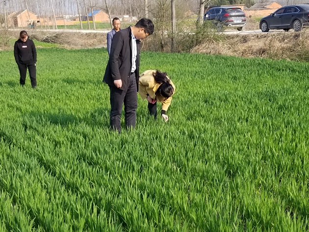 培訓會(huì )結束后,周?chē)诟毖芯繂T與院派駐該村第一書(shū)記陳振一起,現場(chǎng)查看了村里的部分麥田,詳細了解田間苗情,對不同田塊有針對性的提出了下一階段的田間管理意見(jiàn)。