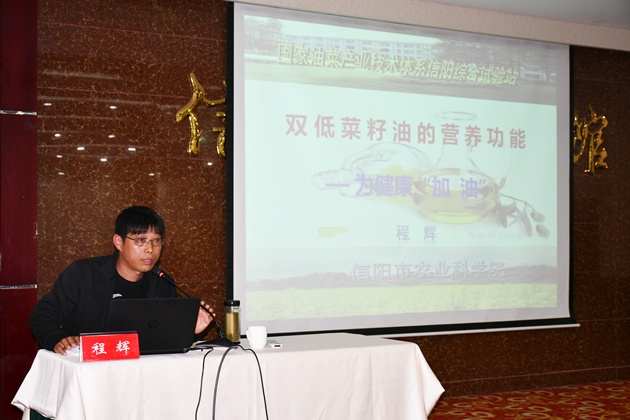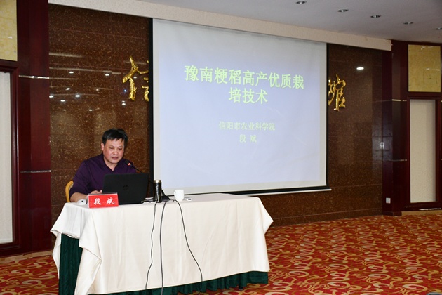 培訓會(huì )上,周晚來(lái)博士、趙文生教授、段斌副研究員、油菜試驗站站長(cháng)程輝副研究員先后作了“環(huán)保型麻纖維膜應用技術(shù)”“水田綠肥主要病蟲(chóng)害及其防治”“豫南粳稻高產(chǎn)栽培技術(shù)”“雙低菜籽油的營(yíng)養功能”的專(zhuān)題講座。