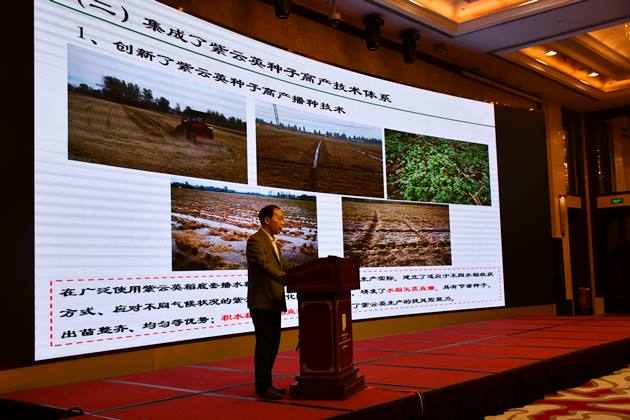 在室內交流環(huán)節,國家綠肥產(chǎn)業(yè)技術(shù)體系種子擴繁與生產(chǎn)技術(shù)崗位科學(xué)家、河南省農科院劉春增研究員介紹了綠肥定位試驗和品種復篩選試驗進(jìn)展情況;國家綠肥產(chǎn)業(yè)技術(shù)體系信陽(yáng)綜合試驗站站長(cháng)呂玉虎副研究員介紹了試驗站在抓好隊伍建設、基地建設、成果轉化、技術(shù)服務(wù)等工作的成功經(jīng)驗和做法;與會(huì )的24名體系崗位科學(xué)家匯報了各自課題的研發(fā)背景、關(guān)鍵技術(shù)問(wèn)題、取得的重要進(jìn)展、存在的問(wèn)題與對策、今后的工作計劃,并就綠肥產(chǎn)業(yè)發(fā)展展開(kāi)了熱烈討論。曹衛東首席科學(xué)科學(xué)家做了點(diǎn)評,他指出,發(fā)展綠肥生產(chǎn)是傳承文明的需要,是清潔生產(chǎn)的需要,是結構調整的需要,也是開(kāi)展脫貧攻堅建設美麗鄉村的需要,信陽(yáng)是全國著(zhù)名的國家綠肥生態(tài)育種基地和中間試驗基地,在綠肥種子生產(chǎn)和高效模式構建等方面為全國做出了榜樣,希望大家學(xué)習好信陽(yáng)的經(jīng)驗和做法,以時(shí)不我待、只爭朝夕的精神努力工作,緊密結合當前生產(chǎn)實(shí)際和區域特點(diǎn),進(jìn)一步加強各崗位和綜合實(shí)驗站的密切融合,確保產(chǎn)業(yè)發(fā)展滿(mǎn)足國家需要。