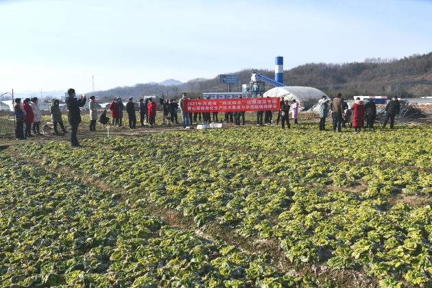 河南省“四優(yōu)四化”優(yōu)質(zhì)蔬菜專(zhuān)項黃心菜標準化生產(chǎn)技術(shù)集成與示范現場(chǎng)觀(guān)摩會(huì )在我市召開(kāi)