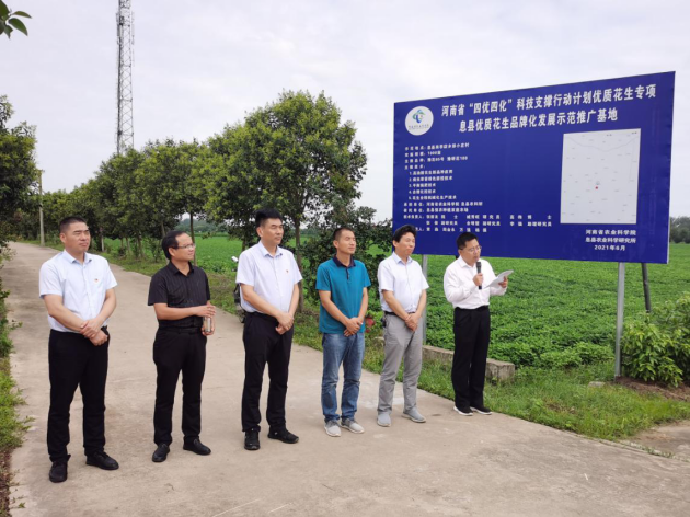 7月27日至29日,河南省“四優(yōu)四化”科技支撐行動(dòng)計劃花生專(zhuān)項負責人,省農科院經(jīng)作所花生室主任臧秀旺研究員及經(jīng)作所張俊副研究員到信陽(yáng)考察指導花生生產(chǎn),我院副院長(cháng)祁玉良研究員、油料所所長(cháng)金開(kāi)美、副所長(cháng)余明慧等陪同考察。