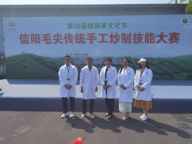 我院茶葉研究所在信陽(yáng)毛尖傳統手工炒制技能大賽中擔任茶葉成品檢測工作