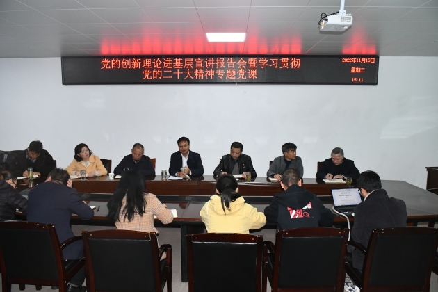為深入學(xué)習貫徹黨的二十大精神,11月15日下午,我院舉辦黨的創(chuàng )新理論進(jìn)基層宣講報告會(huì )暨學(xué)習貫徹黨的二十大精神專(zhuān)題黨課。院黨委委員、副院長(cháng)劉祥臣作專(zhuān)題宣講。信息科科長(cháng)鄒俊主持會(huì )議,院屬部分支部黨員干部30余人參會(huì )。