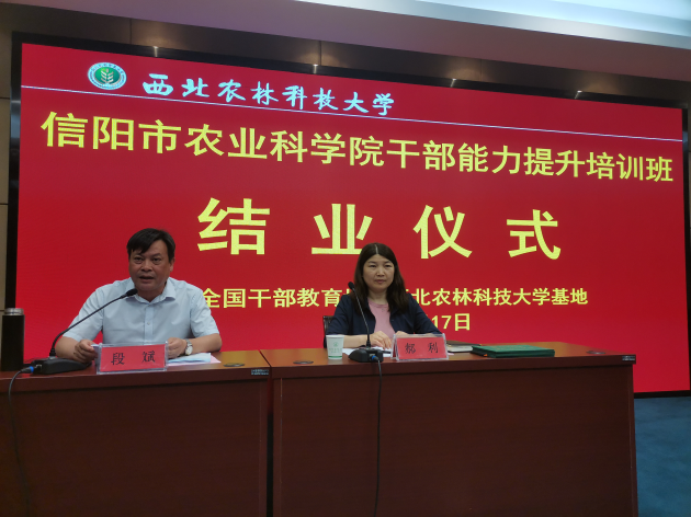 6月17日,為期一周的我院干部能力提升培訓班結業(yè)儀式在西北農林科技大學(xué)舉辦,西北農林科技大學(xué)繼續教育學(xué)院副院長(cháng)郝利、我院總農藝師段斌出席結業(yè)儀式,結業(yè)儀式由段斌主持。