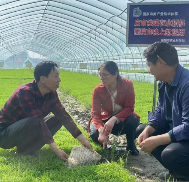 春暖大地,信陽(yáng)市已經(jīng)進(jìn)入了水稻插秧的季節。隨著(zhù)機械化插秧的逐步普及,麻育秧膜因其綠色、高效、環(huán)保的突出優(yōu)點(diǎn)越來(lái)越受到農戶(hù)的歡迎,為更好地推廣麻育秧膜在水稻機械化插秧上的應用,4月12日以來(lái),我院國家麻類(lèi)和水稻產(chǎn)業(yè)技術(shù)體系信陽(yáng)綜合試驗站專(zhuān)家一行4人組成科技服務(wù)團隊,前往羅山縣開(kāi)展應用麻育秧膜育秧機插秧科技服務(wù)活動(dòng)。