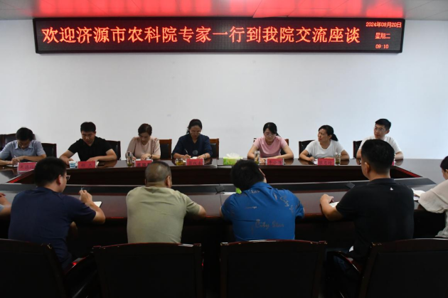 8月20日,信陽(yáng)、濟源兩家科研院所茶葉交流座談會(huì )在我院舉行,濟源市農科院林果研究中心主任牛小沛、高級農藝師張月玲、中級農藝師張江波,我院茶葉所副所長(cháng)鄭杰、朱德焰及全所茶葉科技人員,我院小麥所副所長(cháng)周?chē)诘葏⒓訒?huì )議,我院茶葉所所長(cháng)蔣雙豐主持會(huì )議。