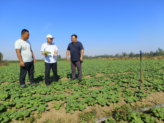 在平橋區信陽(yáng)市俊農發(fā)展農業(yè)專(zhuān)業(yè)合作社,張曉偉考察了我院示范推廣信黃1號、精品冬秀8號、綠黃金等黃心菜新品種,并就提高新品種育苗出苗率、獲得更多壯苗等水肥管理措施進(jìn)行了現場(chǎng)指導。
