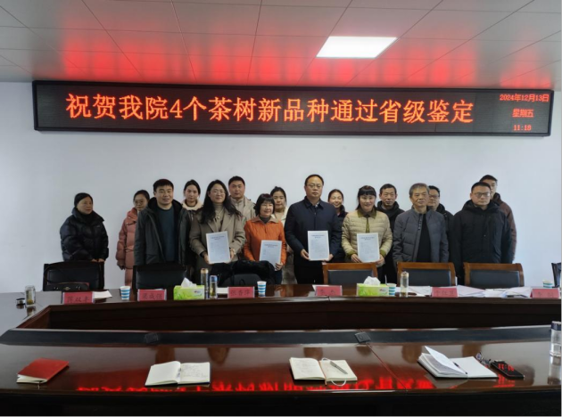 2024年12月13日,河南省茶樹(shù)新品種鑒定結果報告會(huì )在我院召開(kāi),會(huì )上,省經(jīng)濟作物推廣總站副站長(cháng)于紅衛宣布由我院自主選育的4個(gè)豫茶系列茶樹(shù)新品種“豫茶6號”“豫茶8號”“豫茶9號”“豫茶10號”等通過(guò)省級鑒定,并現場(chǎng)頒發(fā)鑒定證書(shū)。這4個(gè)品種具有發(fā)芽早、抗病蟲(chóng)能力強、抗旱抗寒性強、適應性強等特點(diǎn),具有較大的推廣價(jià)值。