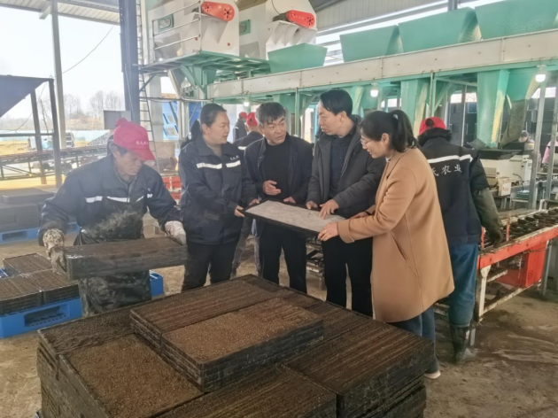 在羅山縣蓮花農機農藝專(zhuān)業(yè)合作總社育秧車(chē)間,農戶(hù)正緊鑼密鼓進(jìn)行水稻育秧作業(yè)。在仔細查看現場(chǎng)麻育秧膜鋪設情況后,信陽(yáng)麻類(lèi)綜合試驗站站長(cháng)張麗霞副研究員指出:“麻育秧膜需與基質(zhì)緊密貼合,平鋪在育苗盤(pán)底部,確保膜體平整無(wú)褶皺;覆土厚度控制在1-1.5厘米,播種后保持基質(zhì)濕潤,操作過(guò)程中避免膜體破損”。