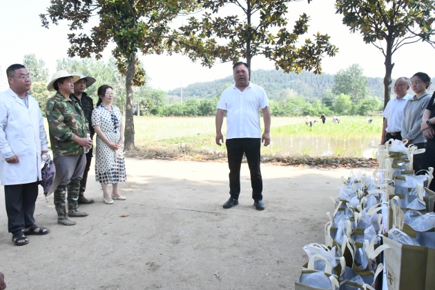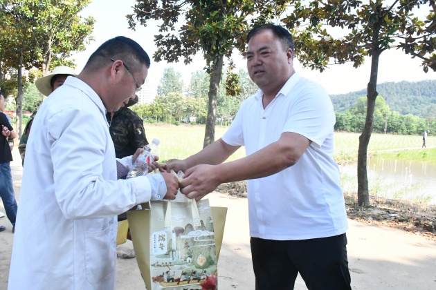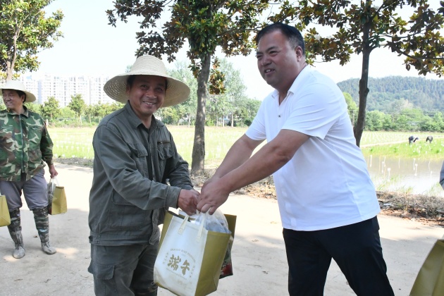 隨后,院黨組書(shū)記、院長(cháng)鐘思志,總農藝師段斌親自帶隊來(lái)到基地水稻試驗田間,親切看望慰問(wèn)了正埋頭苦干、進(jìn)行關(guān)鍵田間試驗的一線(xiàn)科研人員,與他們進(jìn)行親切交談,詳細了解試驗進(jìn)展等情況,對他們不畏酷暑、堅守崗位的奉獻精神給予高度贊揚。院領(lǐng)導親手將本院職工們精心包制的粽子和院工會(huì )準備的防暑降溫物資一并送到了一線(xiàn)科研人員手中,囑咐他們務(wù)必注意勞逸結合,做好防暑降溫,確保身體健康和工作安全。這份來(lái)自院領(lǐng)導和全體同事的“清涼”關(guān)懷,深深浸潤了科研人員的心田,讓他們真切感受到了農科院大家庭的濃濃溫情。