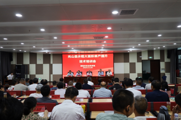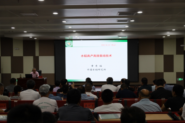 為貫徹落實(shí)國家新一輪千億斤糧食產(chǎn)能提升戰略,充分發(fā)揮現代農業(yè)科技在水稻增產(chǎn)中的支撐引領(lǐng)作用,6月20日,國家水稻產(chǎn)業(yè)技術(shù)體系信陽(yáng)綜合試驗站聯(lián)合光山縣農業(yè)農村局,在光山縣縣委黨校舉辦了一場(chǎng)“水稻大面積單產(chǎn)提升技術(shù)培訓會(huì )”。來(lái)自中國水稻研究所、河南農業(yè)大學(xué)、我院等單位的包縣專(zhuān)家團隊,以及光山縣各鄉鎮水稻種植大戶(hù)、家庭農場(chǎng)主、合作社等新型經(jīng)營(yíng)主體負責人和基層農技推廣人員80余人參會(huì )。