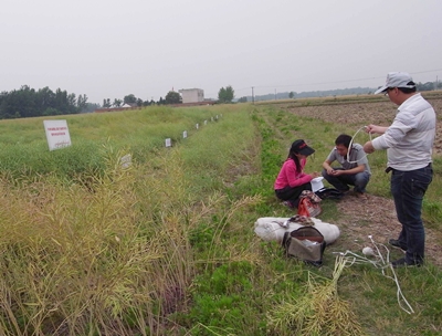 515,國家油菜產(chǎn)業(yè)技術(shù)體系信陽(yáng)綜合試驗站團隊成員來(lái)到肖王鄉陳畈村魏聲玉農戶(hù)的油菜田內,對已經(jīng)成熟的油菜專(zhuān)用肥試驗和配方施肥試驗的油菜植株進(jìn)行測產(chǎn)取樣,油菜配方施肥試驗共設3次重復、14個(gè)處理、42個(gè)小區。專(zhuān)用肥試驗是沒(méi)有設置重復的大區對比試驗。