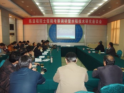 在隨后召開(kāi)的座談會(huì )上,陳溫福與我市水稻技術(shù)人員,就粳稻的發(fā)展前景、高產(chǎn)栽培技術(shù)等進(jìn)行了深入探討。長(cháng)期以來(lái),我市主要種植秈型水稻,相對豫北或其他地區,稻米品質(zhì)差,市場(chǎng)競爭力弱,耕作制度不盡合理,水稻生產(chǎn)機械化程度相對較低,嚴重制約著(zhù)豫南水稻生產(chǎn)的進(jìn)一步發(fā)展。對此,大家認為,粳稻具有適應機械化種植、品質(zhì)優(yōu)、耐肥抗倒、增產(chǎn)潛力大、市場(chǎng)效益好等特點(diǎn);信陽(yáng)地處亞熱帶向暖溫帶過(guò)渡區,日照充足、雨熱同季,水稻生長(cháng)發(fā)育氣溫適宜,生產(chǎn)條件優(yōu)越,宜秈宜粳,發(fā)展粳稻的潛力巨大。