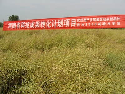 月11日,由我院承擔的河南省科技成果轉化計劃(農業(yè))項目“優(yōu)質(zhì)高產(chǎn)多抗雜交油菜新品種信油2508試驗與示范”順利通過(guò)了省科技廳組織的驗收。