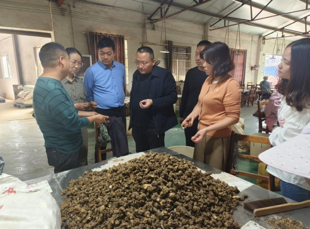 三、為促進(jìn)中藥材相關(guān)產(chǎn)業(yè)高質(zhì)量發(fā)展,進(jìn)一步加強交流合作,10月16日,河南省農科院西峽分院常務(wù)副院長(cháng)袁江濤一行來(lái)我市調研中藥材產(chǎn)業(yè)發(fā)展情況。調研組一行先后考察了河南李氏本草藥業(yè)有限公司和河南省“四優(yōu)四化”科技支撐行動(dòng)計劃優(yōu)質(zhì)中藥材專(zhuān)項蒼術(shù)減肥增效仿野生栽培關(guān)鍵技術(shù)集成示范基地,并就如何進(jìn)一步保護及提升信陽(yáng)南蒼術(shù)道地藥材綜合效益等方面給予合理的建議和意見(jiàn)。
